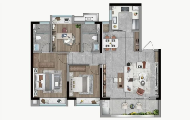 而在建筑面积约89㎡产品设计上,项目精研独立空间的尺寸,在各功能区能满足生活使用的前提下,精琢房型设计。市面上90㎡多为2+1的房型设计,而颐和四季府做出真正三房的空间维度,让小户型做到了尺寸和功能的完美平衡。